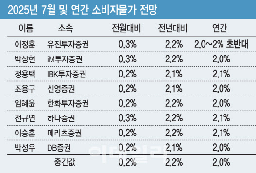 전규연 하나증권 연구원은 “민생회복 소비쿠폰 지급 등 2차 추가경정예산을 기반으로 한 소비 확대가 단기 물가 상승을 이끌 가능성이 있다”며 “고강도 부동산 대책 발표 이후 전월세 가격 부담이 높아지는 점도 집세 부문 물가 상승을 이끌 수 있는 요소”라고 진단했다.