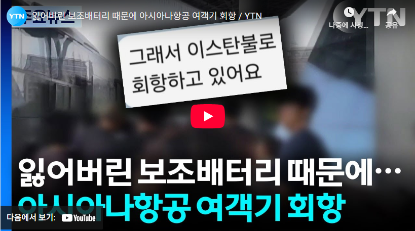 해당 항공편은 이스탄불 공항으로 돌아와 승객들을 내려준 뒤 점검을 진행했는데 이 과정에서 승객이 잃어버린 보조배터리도 발견했습니다.